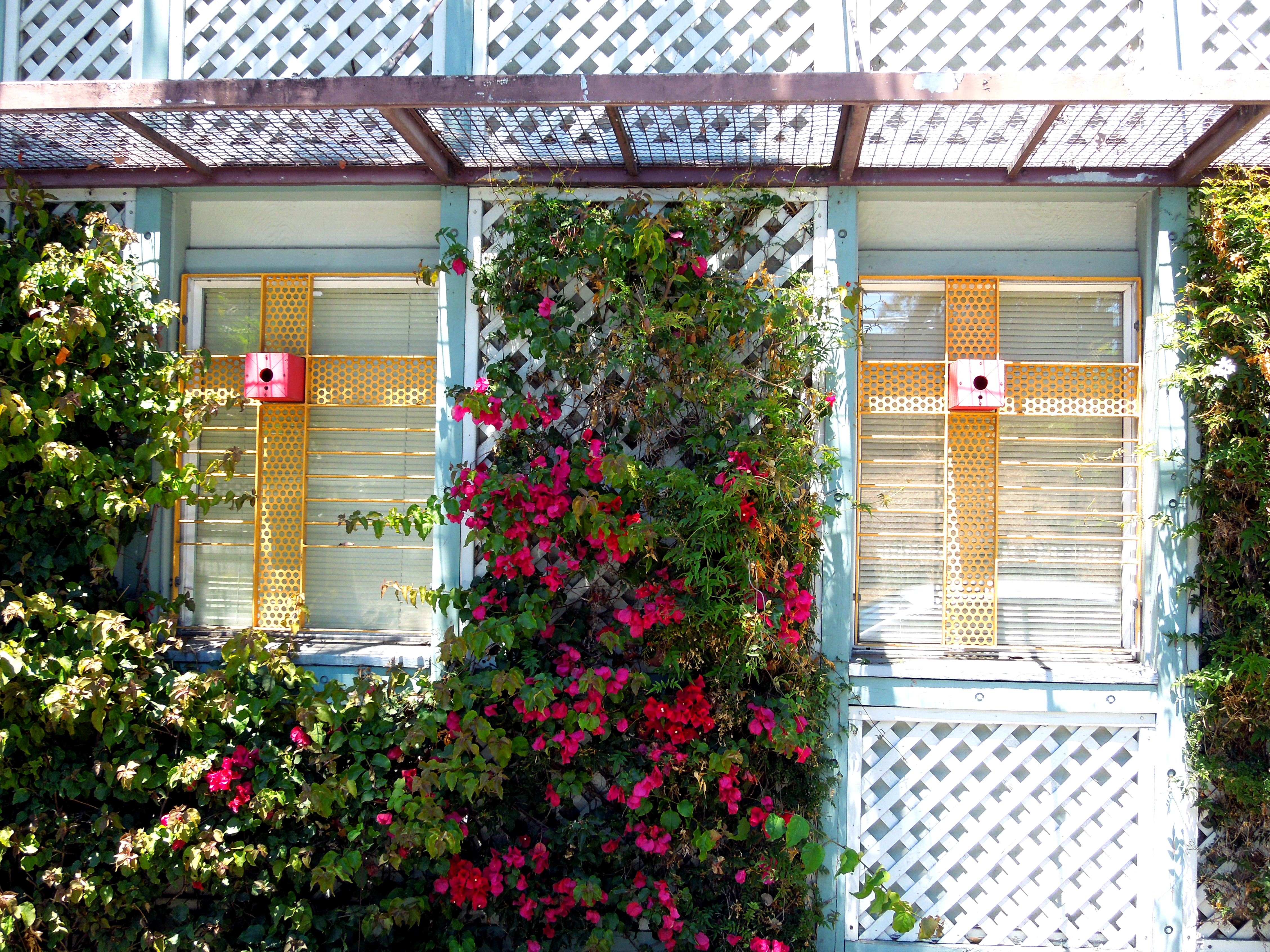 I could take a whole series of photos showing beautiful security bars in Oakland. This design for windows in the Longfellow neighborhood is my favorite example. The center of the design is a nesting box for birds. It’s such a tender response to crime.