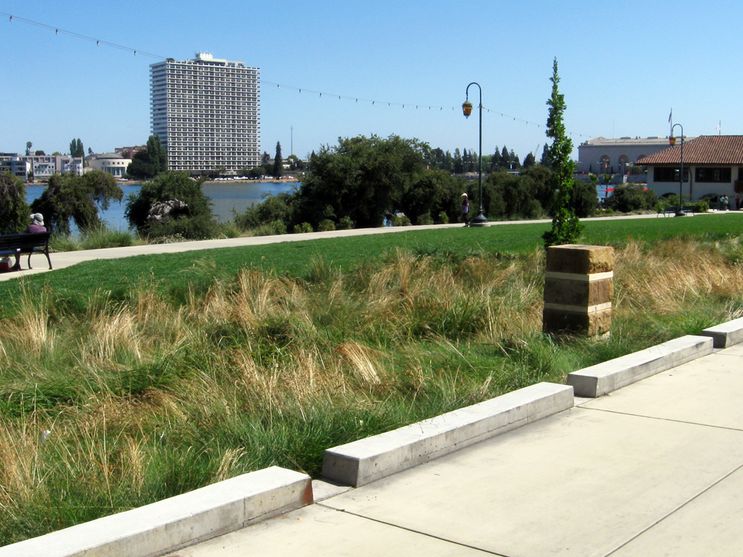 These images show three BMPs used in the Lake Merritt Municipal Boathouse project. The landscape architects for the project were Wallace Roberts & Todd of San Francisco and Adrienne Wong Associates of Oakland.
