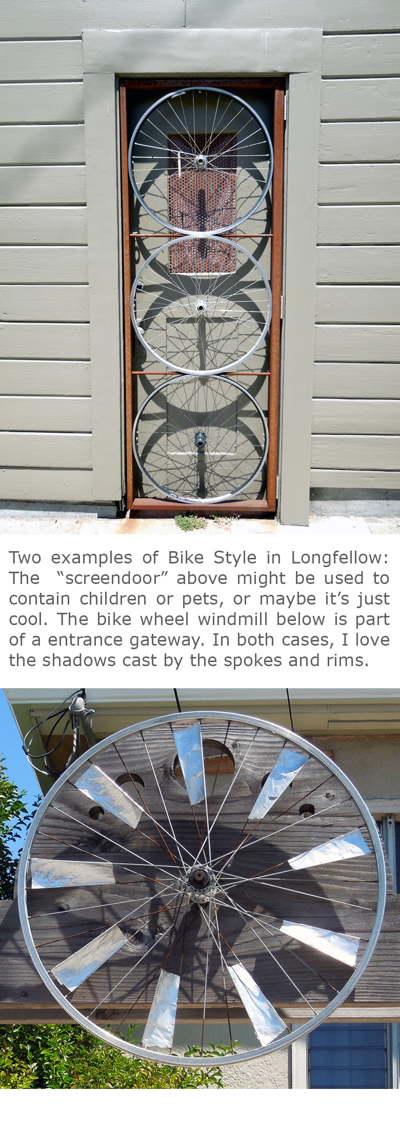 There are other remarkable qualities of the Longfellow neighbors, black and white: they are walking and riding bikes. As a matter of fact, there’s a tendency toward bike-themed design throughout the neighborhood. They are also growing food in their yards. These traits are probably evidence of a community that wants a sustainable lifestyle. The by-product is a neighborhood where people are active and outside.