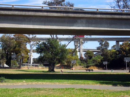 Grove-shafter park aptly named after a freeway